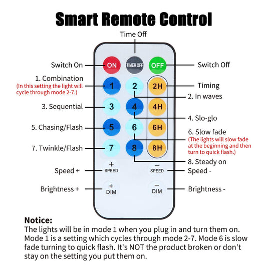 Cluster Lights with Remote, 8 Modes, Adapter